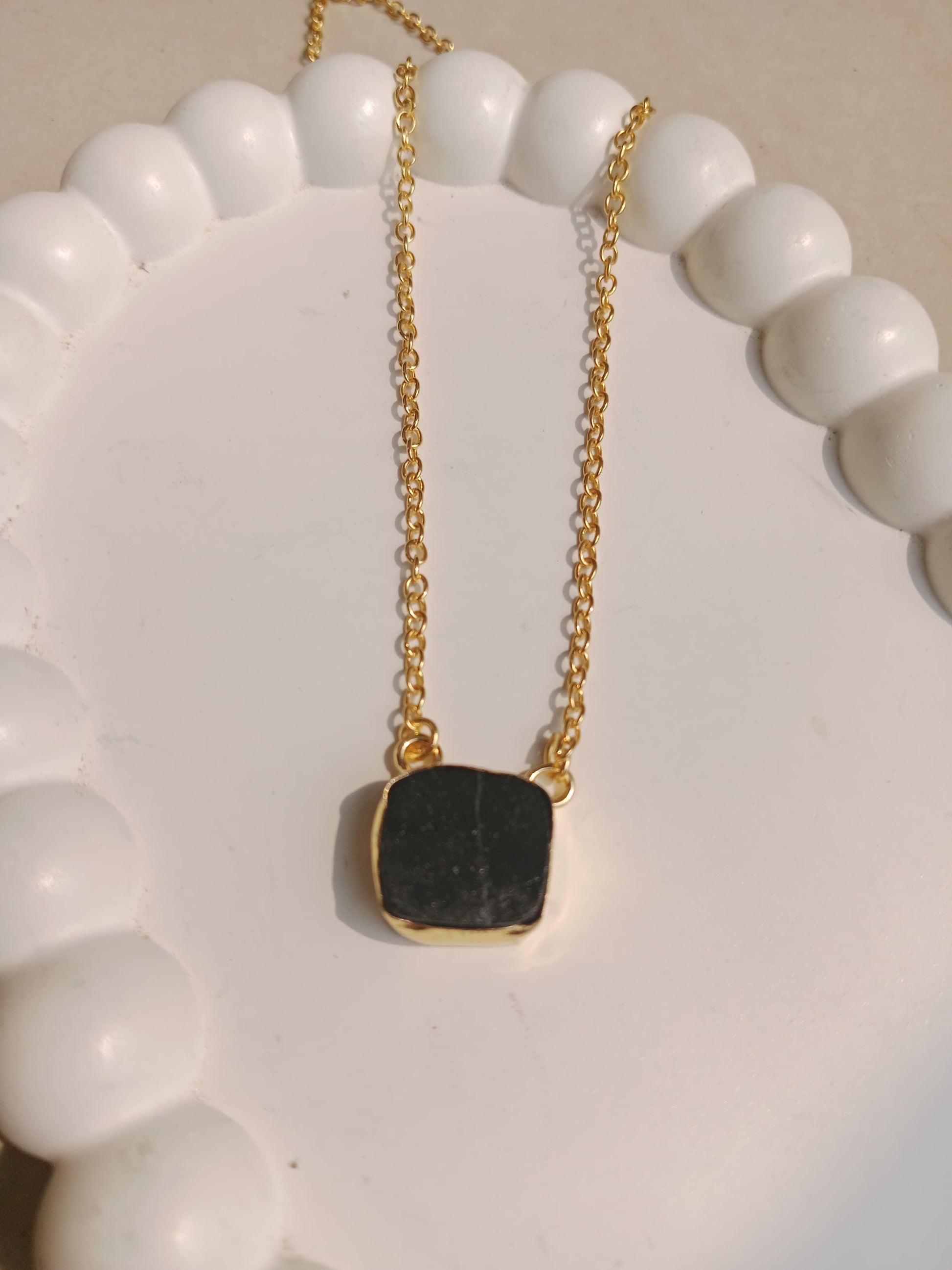 Grounded in elegance, this necklace features a raw-cut natural Black Tourmaline stone set in a sleek 18K gold plated brass chain. Known for its powerful protective and grounding properties, black tourmaline is a favorite for those who seek calm, clarity, and strength. Each piece is one-of-a-kind, with unique edges and textures that reflect nature's artistry.